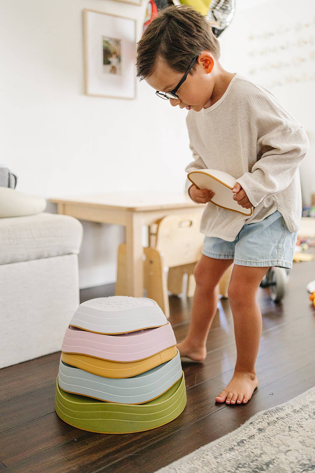 These balance stepping stones are designed to foster imaginative play and enhance motor skills and confidence in young adventurers. Our large set of six stepping balance stones are non-slip, water-proof, light weight and are designed for indoor and outdoor use. Use in the home, classroom, or sensory playroom. Use as an obstacle course, flip upside down and use as bowls to sort items, or stack to use as a stool or seat. Watch as children create, jump, and balance their way through a colorful garden landscape, enhancing their balance, coordination, and creativity.