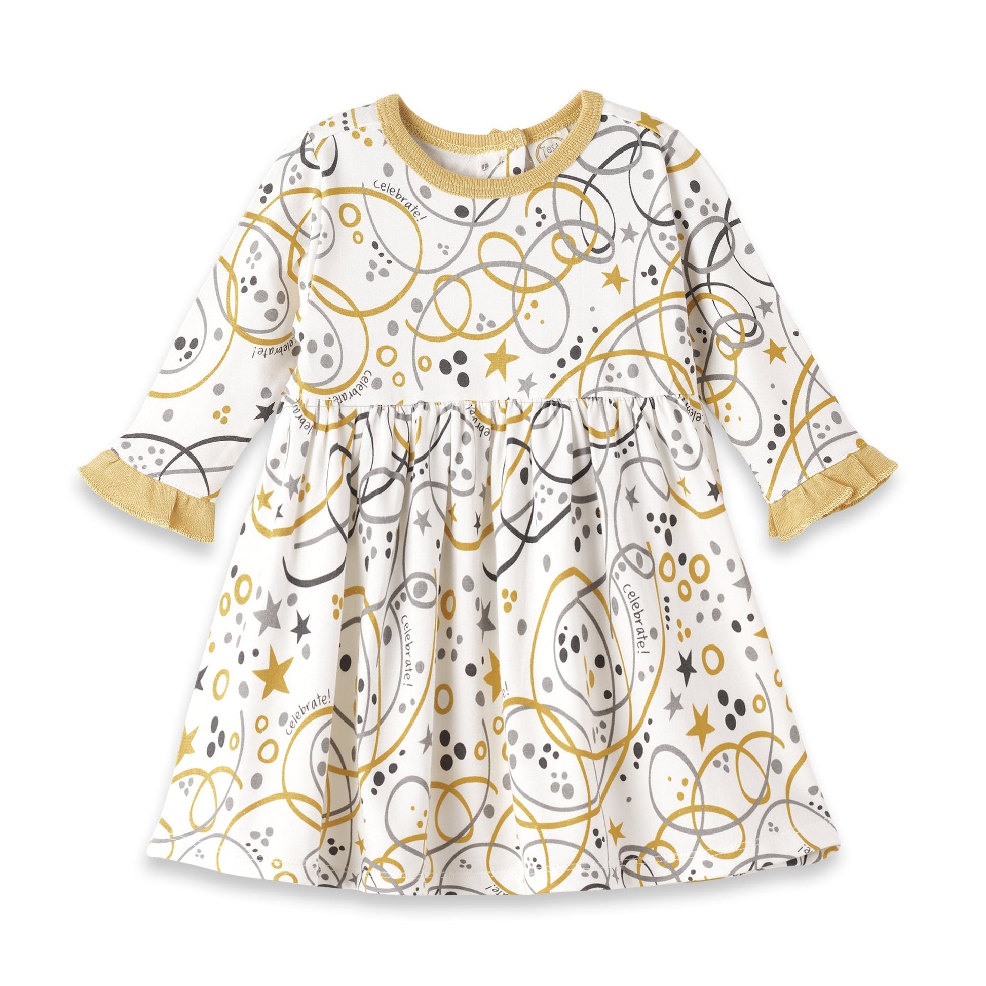 Celebrate New Year Dress for baby and toddler girls. She'll be outfitted cute and comfy in our super-soft bamboo/cotton blend jersey. Buttons in back for easy on and off. This listing is for 1 dress only. Order optional headband separately. Machine wash warm. Tumble dry low. FINAL SALE. This item is specially priced and not available for return or exchange.