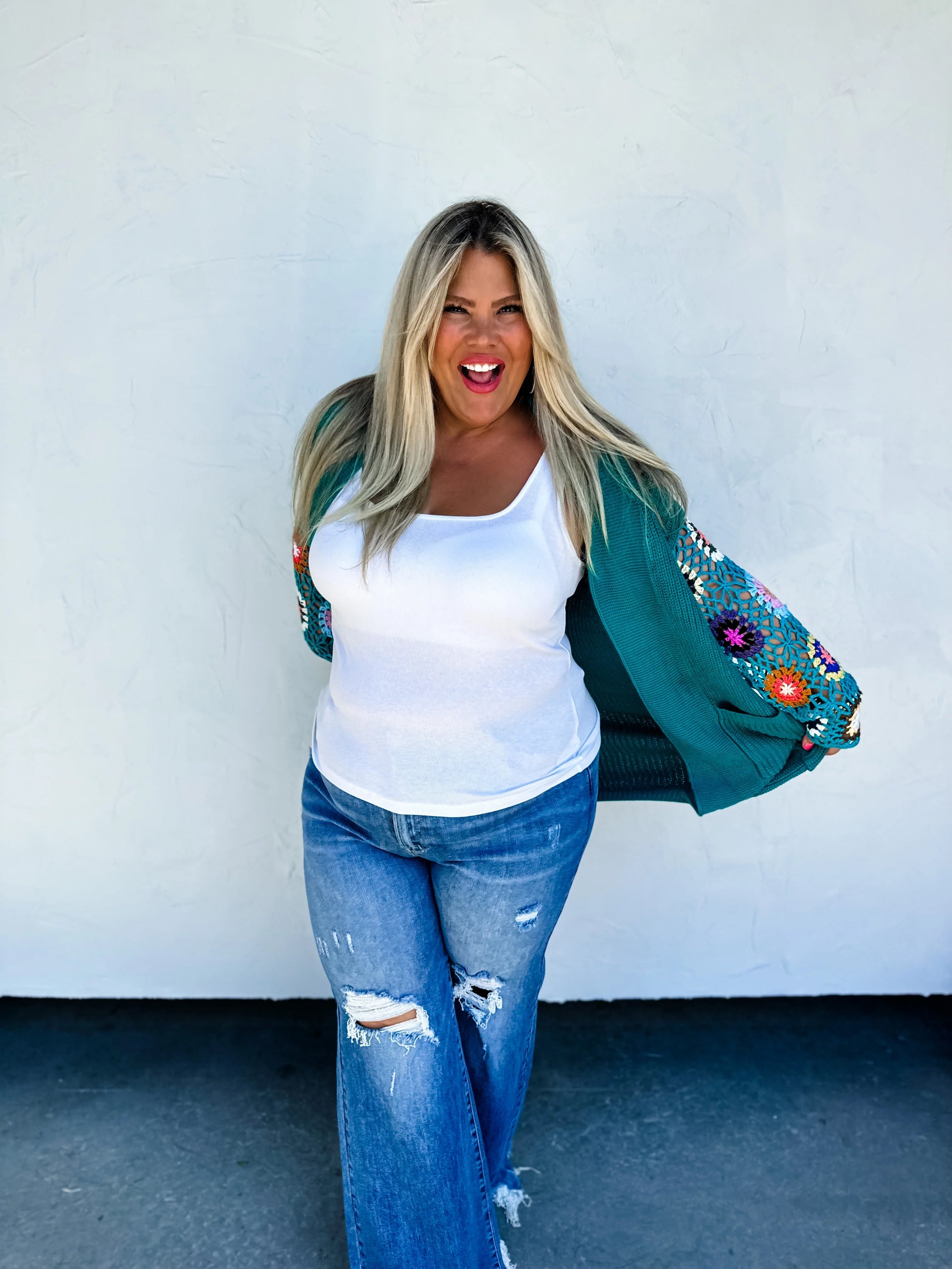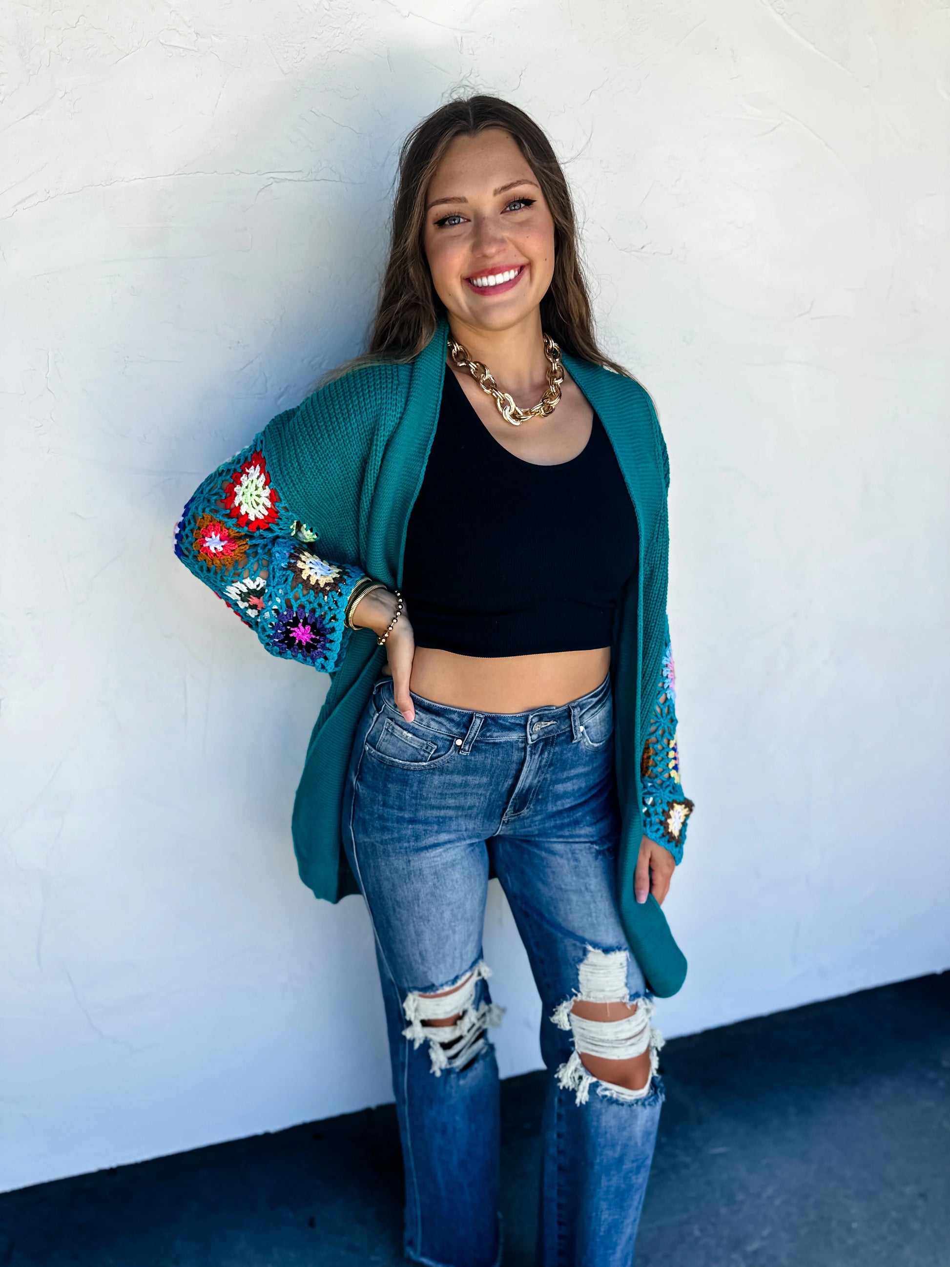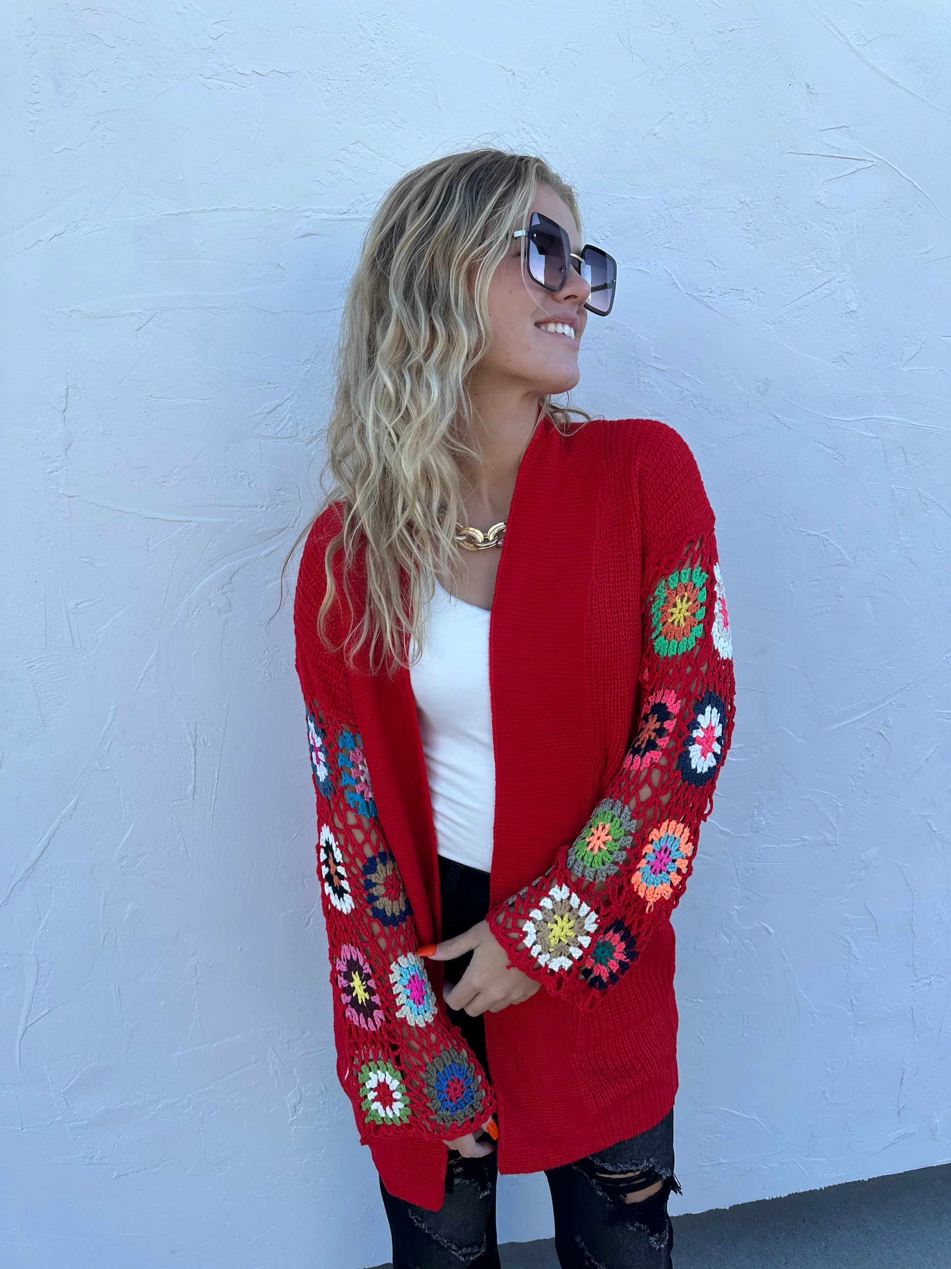 Our hand crocheted sleeve cardigans mix the best of the crochet trend with comfy cardi style all in one!