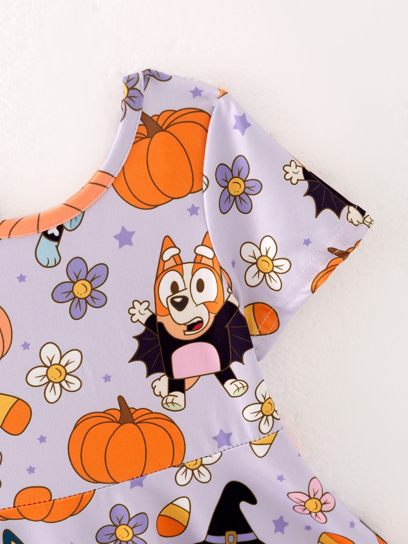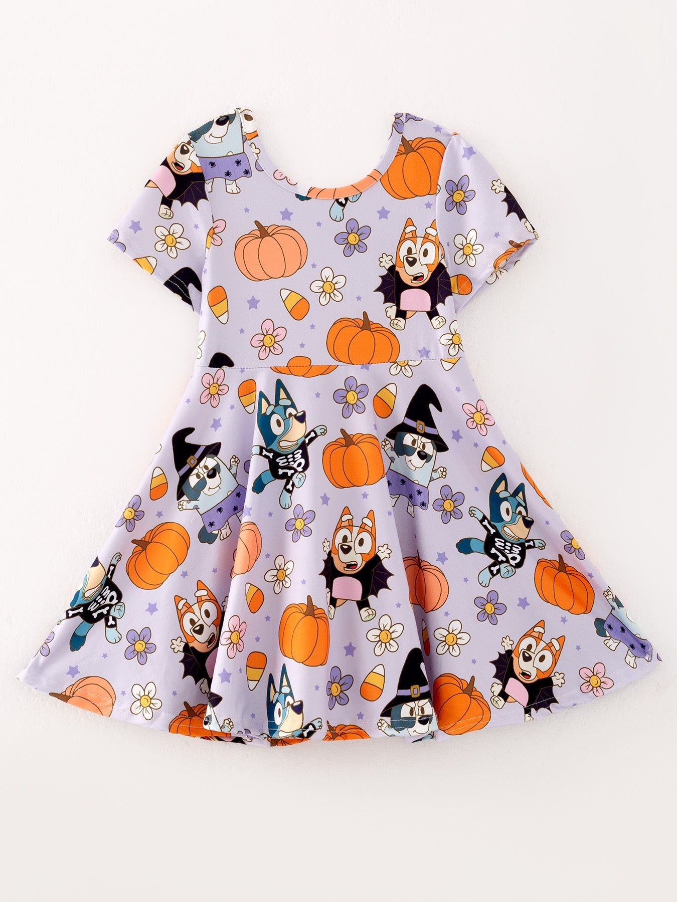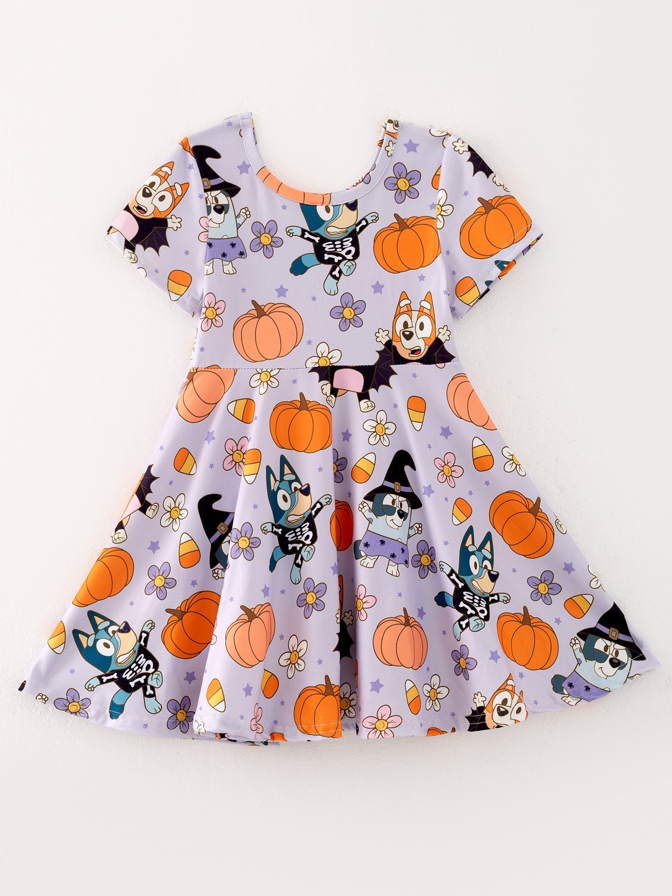 Fall Halloween Cartoon Girls Pumpkin Print Milk Silk Dress