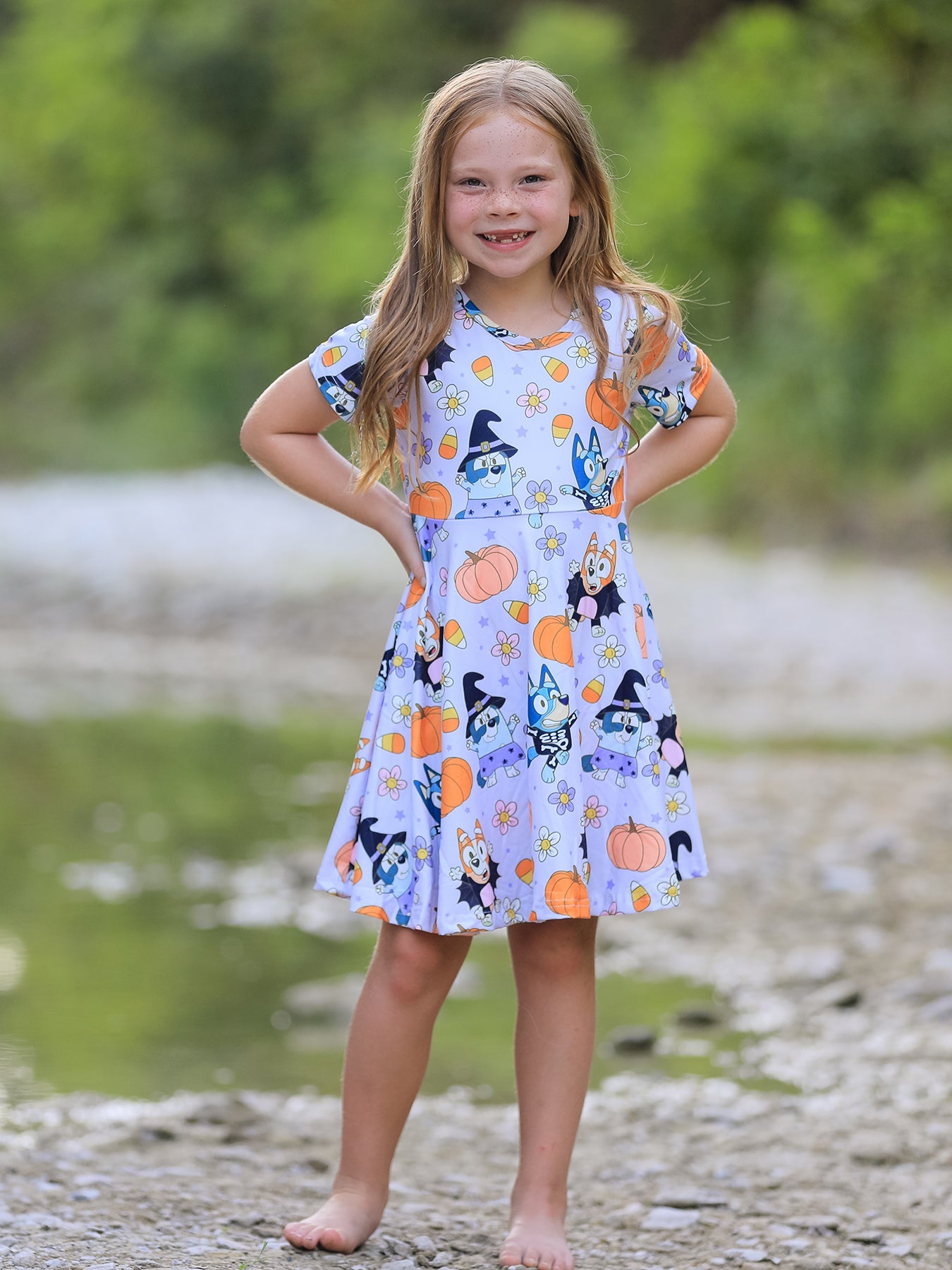 Get ready for the spookiest season with our Halloween Cartoon Girls Pumpkin Print Milk Silk Dress! Made with soft and comfortable milk silk fabric, this dress features a playful pumpkin print that will have your little one looking adorable and ready for trick-or-treating. Don't miss out on this must-have for any Halloween celebration!
