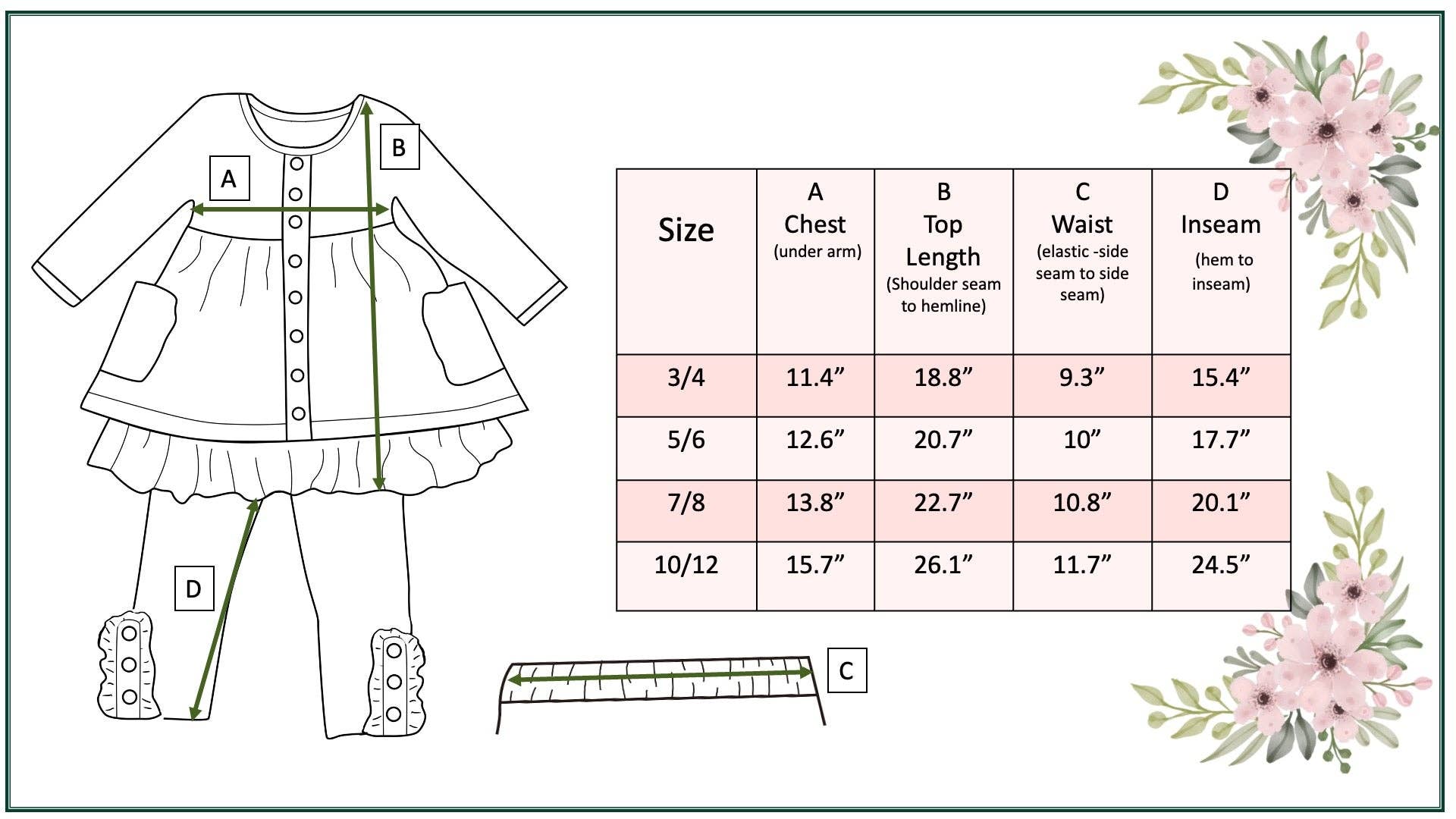 This two piece set features a playful beige, blue, and pink coquette bow design. Polka dot leggings with cute ruffle button details that will make your little girl stand out. Great outfit for back to school in the fall and the winter.