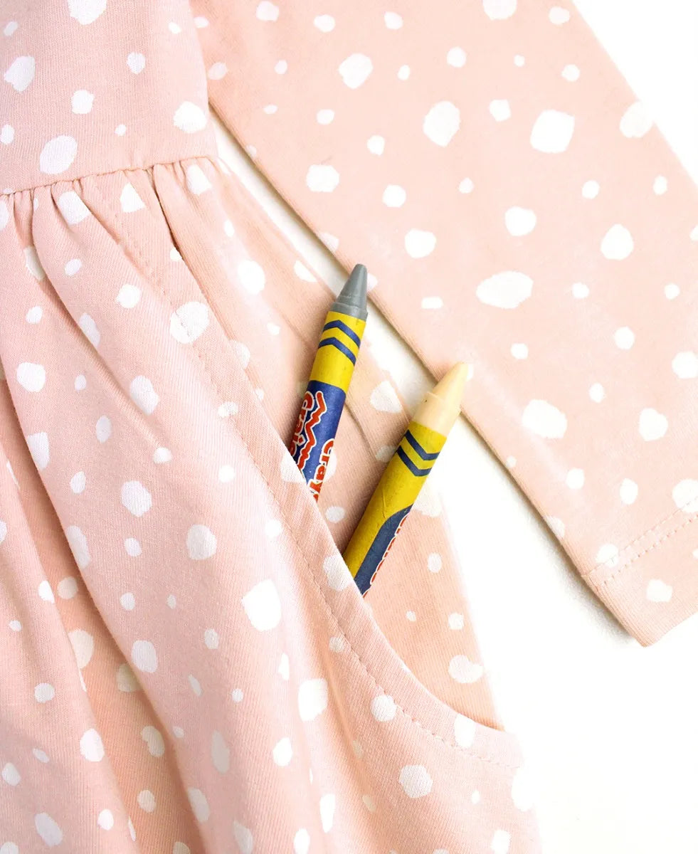 This is the dress for little girls who love to twirl and play! Made from soft and stretchy knit fabric, this dress combines comfort and style effortlessly. With its long sleeves and twirl-worthy skirt, this dress is perfect for both casual outings and special occasions, ensuring your little one looks adorable and feels free to move and dance to her heart's content.