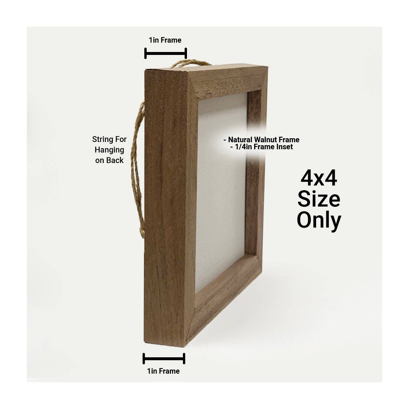 This unique piece is a simple way to bring beauty and charm to any wall or shelf within the home. It is made from high-quality American hardwood planks with a hand-painted face, printed with UV-cured ink, and framed in a natural walnut frame. Each piece is unique with its own personality, marks, wood grain, and look. Easy to clean with a dry cloth.