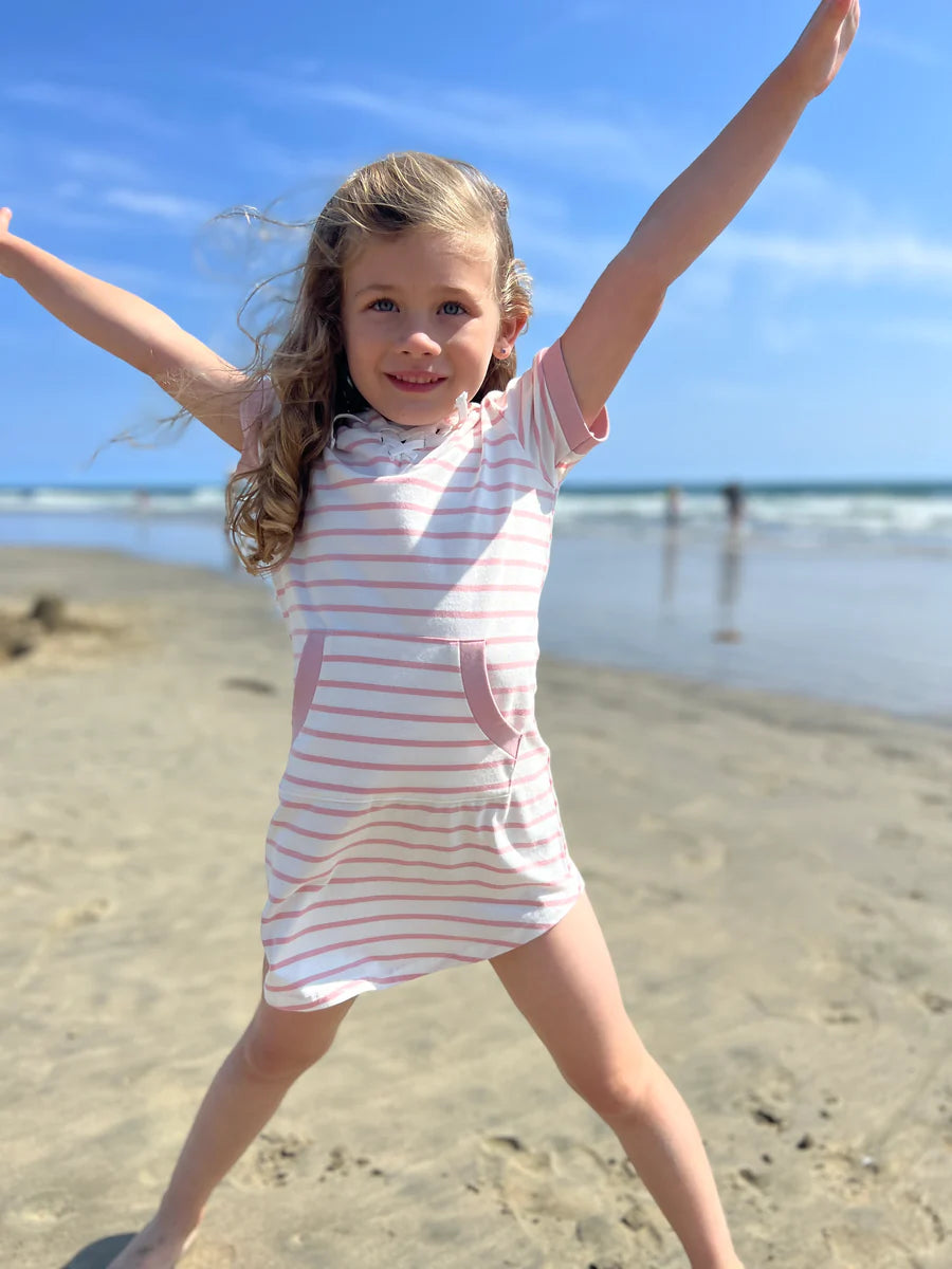 The Tracey is a must have. Featuring grey and ivory nautical stripes, this dress is simply timeless! Wear it over a swimsuit or alone. This playful yet sweet basic will add a touch of fun to any outfit.