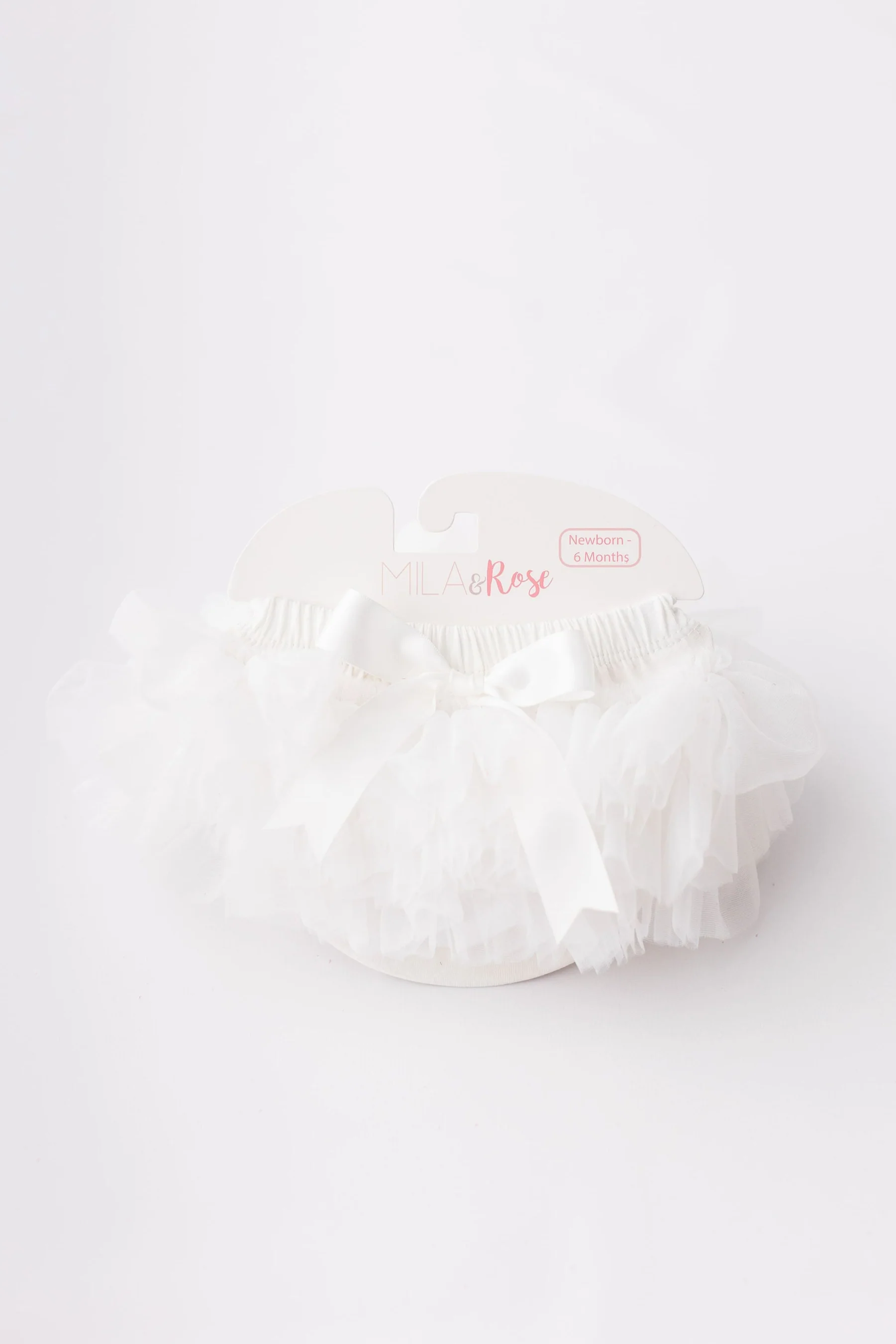 This Tutu Bloomer is the cutest fluffy thing you've ever seen! Perfect for newborn photos, cake smash, or even everyday. Ruffles are on the front and back of the bloomers. Fits 0-6 M